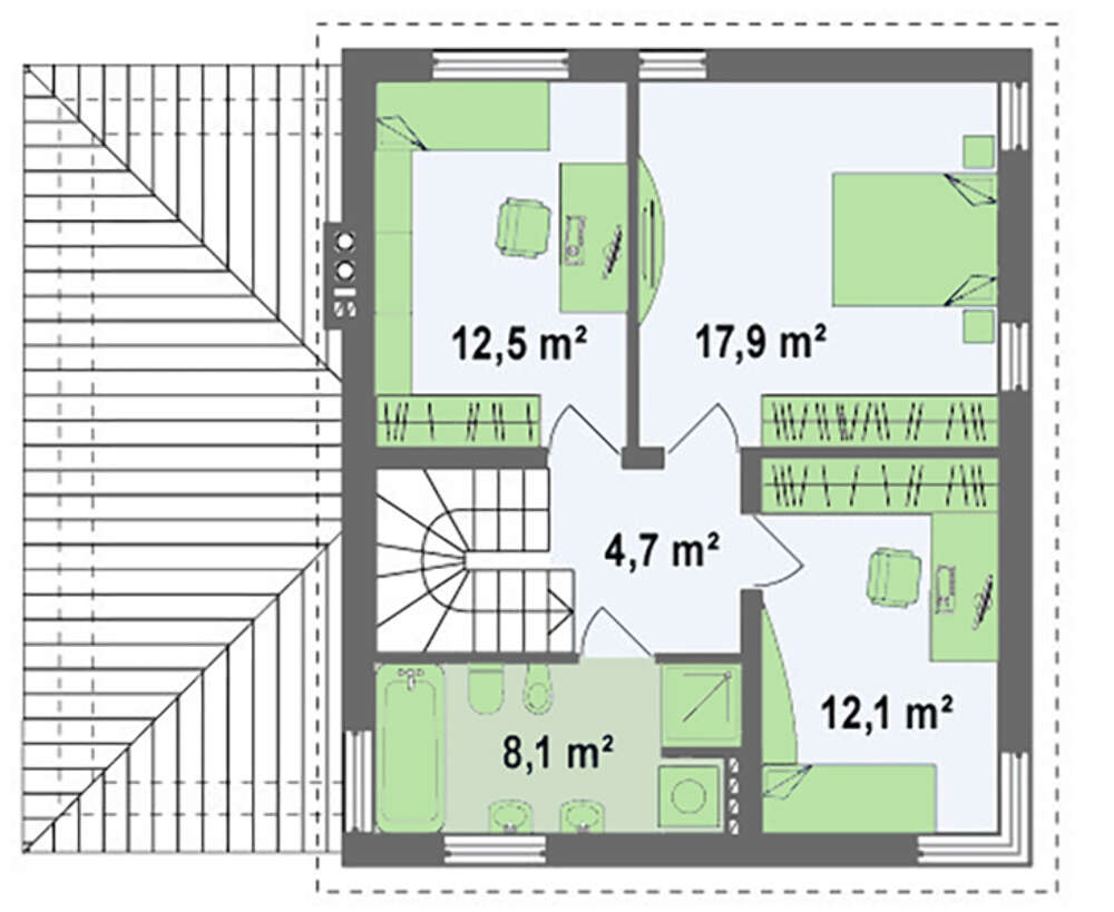 Проект двухэтажного современного дома с тремя спальнями и гаражом