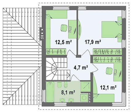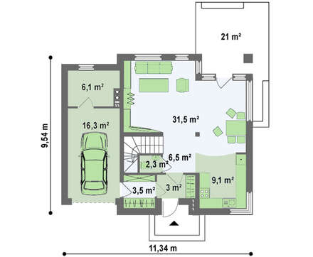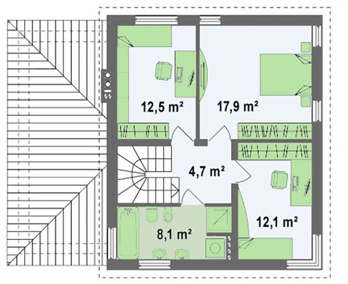 • 4M668 Проект двухэтажного современного дома с тремя спальнями и гаражом