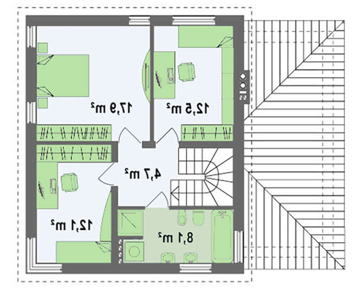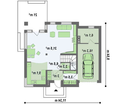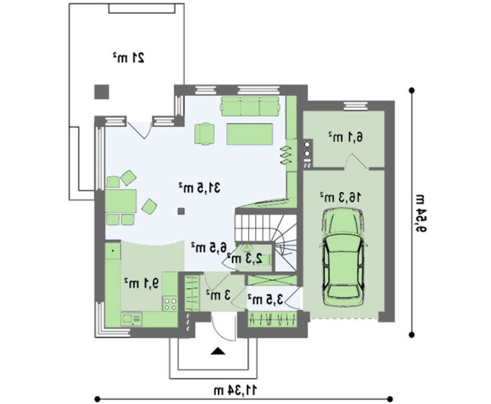 • 4M668 Проект двухэтажного современного дома с тремя спальнями и гаражом