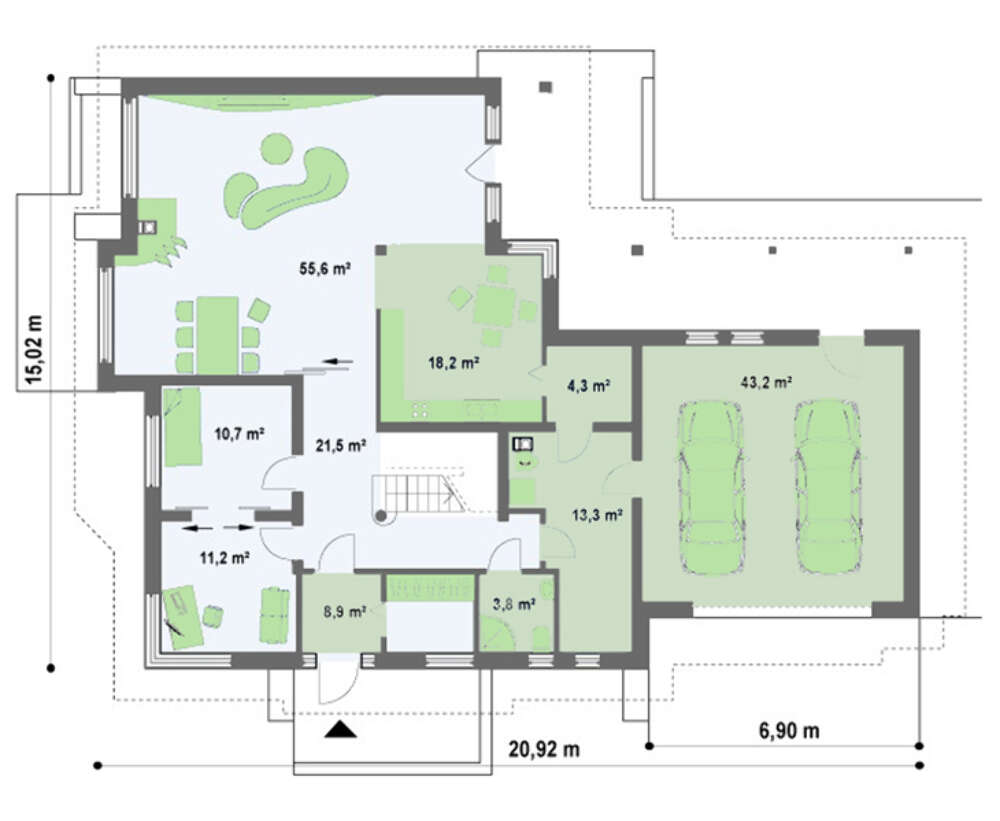 Проект элитного особняка с гаражом для двух автомобилей 4M452