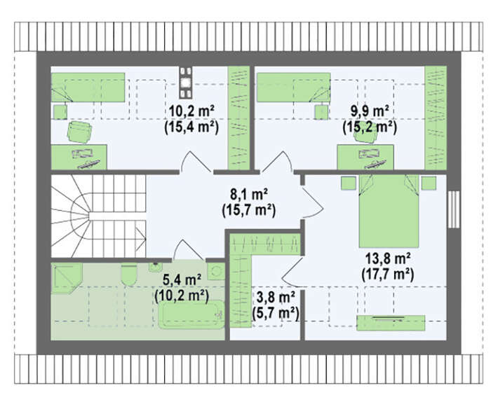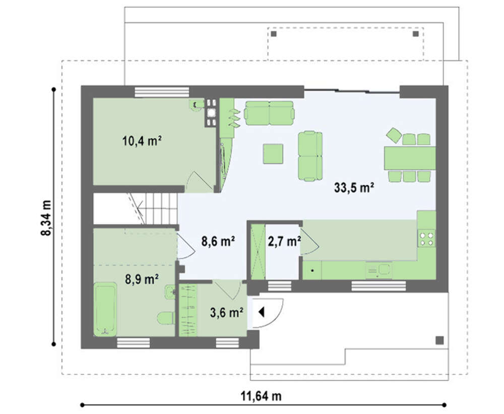 Проект содержит три раздела – АрхитектурныйКонструктивный и Инженерный: водоснабжение, отопление, вентиляция, канализация, электроснабжение (приобретается за дополнительную плату) + Пояснительная записка.