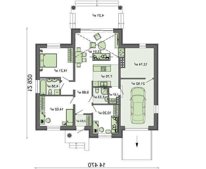 Проект содержит три раздела – Архитектурный, Конструктивный и Инженерный: водоснабжение, отопление, вентиляция, канализация, электроснабжение (приобретается за дополнительную плату) + Пояснительная записка.