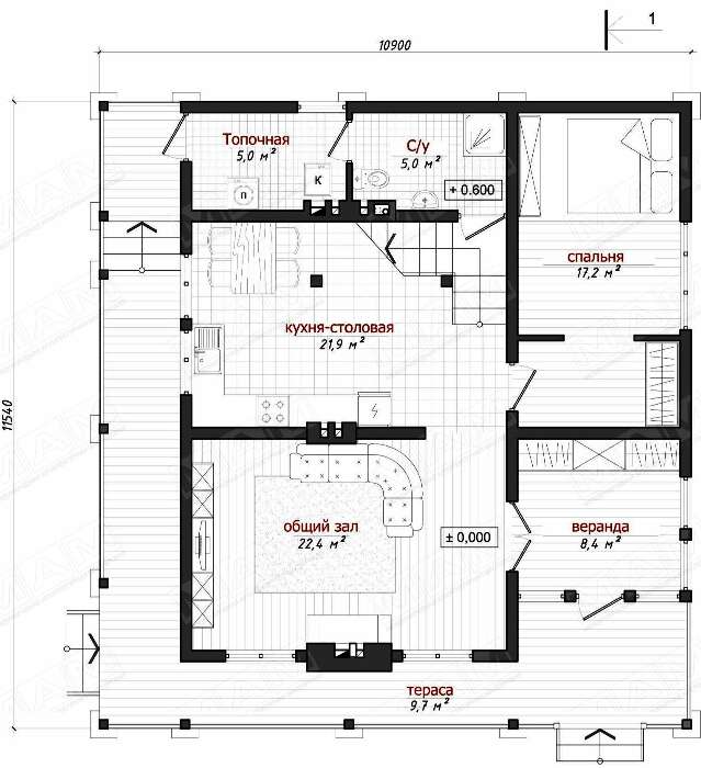 | Стены: | каркасная технология |