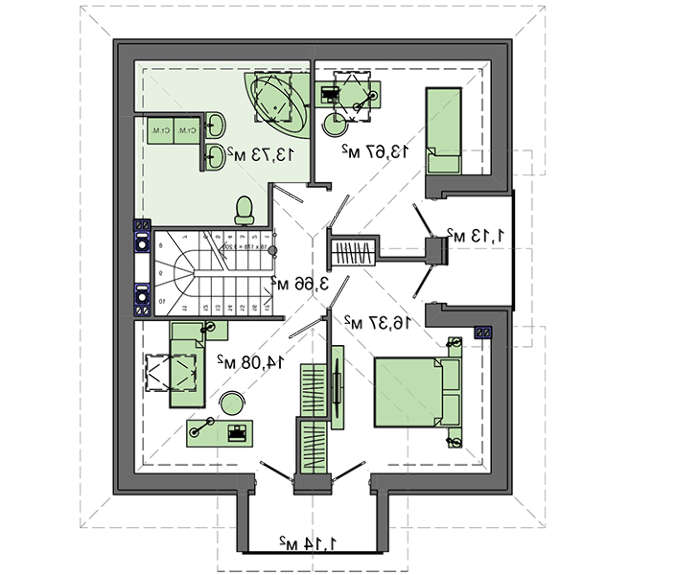На втором этаже расположена комфортная ночная зона. Она состоит из трех спален и вместительной ванной, совмещенной с прачечной. Кстати, в каждой из спальных комнат предусмотрен собственный выход на балкон. Мансардные окна создают ощущение домашнего уюта и покоя.
