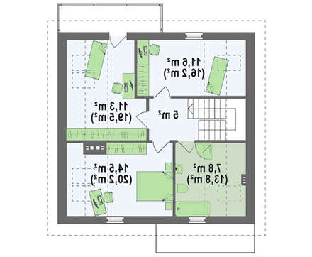 Проект классического коттеджа средних размеров с двухскатной крышей 4M216