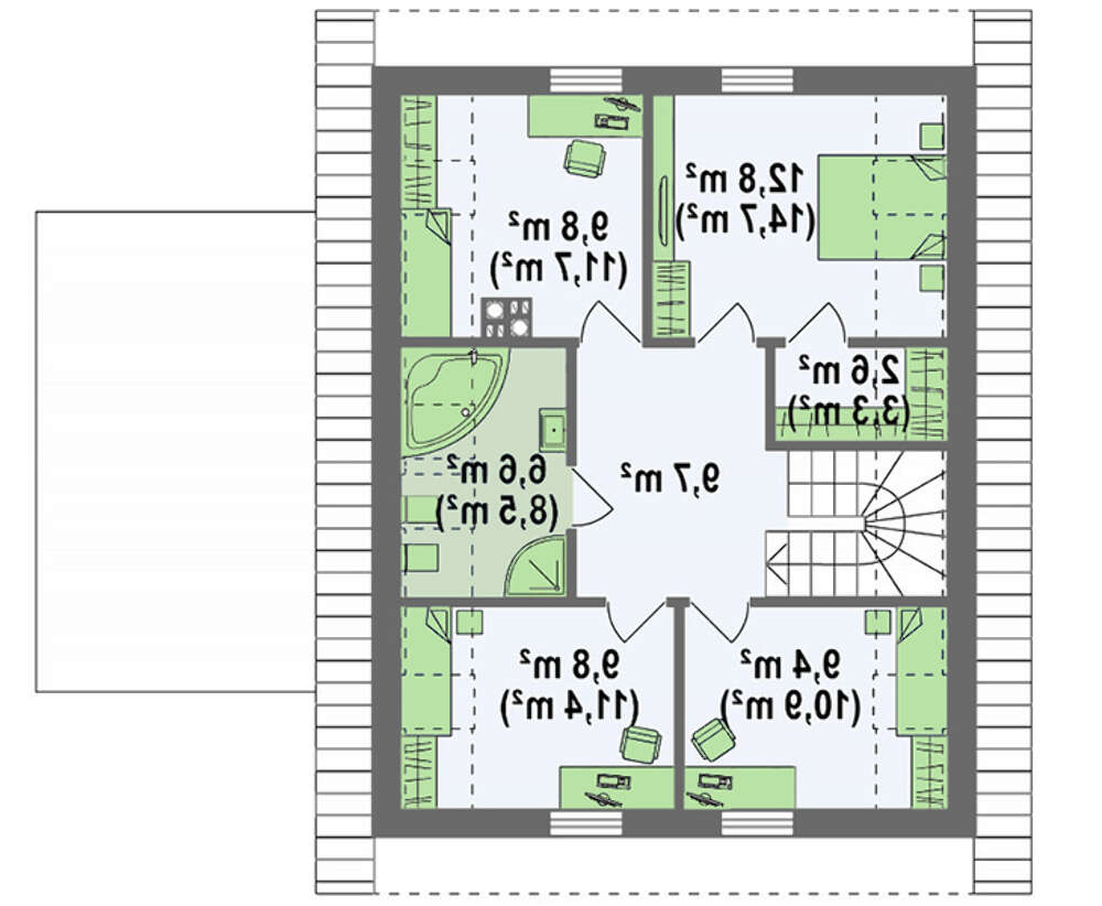 Второй этаж представляет территорию личных апартаментов. Площадь четырех помещений рассчитана на спальную мебель и позволяет с комфортом отдохнуть и расслабиться. Просторный санитарный узел сможет вместить самую современную и многофункциональную сантехнику.