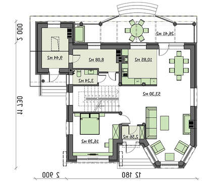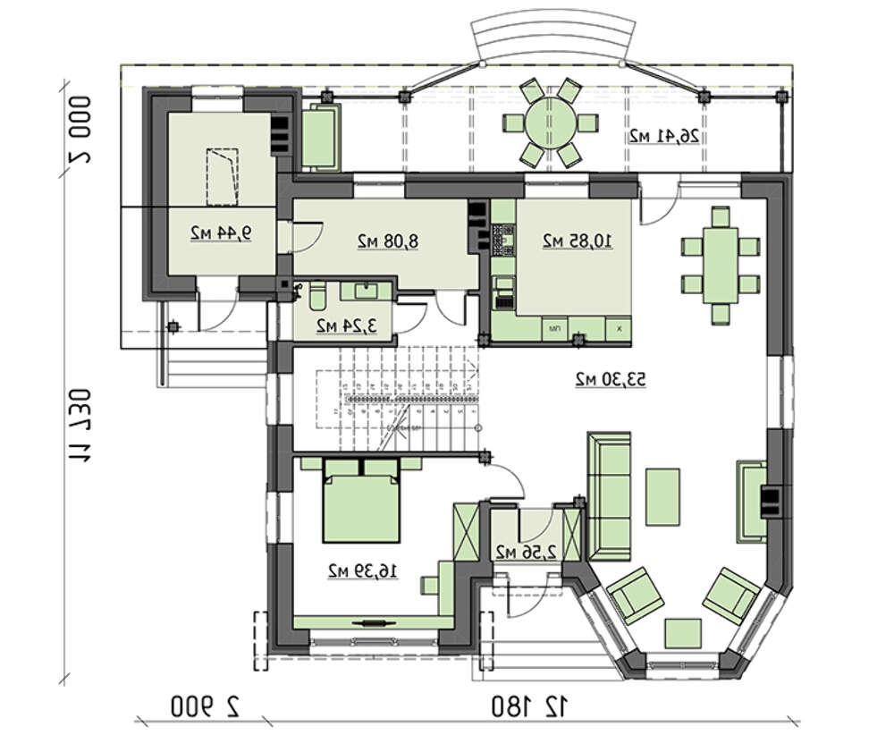 Размер эркера, закругленной части гостиной, ширина 4205 мм * длина 3607 мм, в самой узкой части эркера - ширина 1961 мм. Размеры позволяют в этой части дома чувствовать себя комфортно! На электронный адрес отправим Вам полную информацию по этому проекту на ознакомление. А так же в л >>>