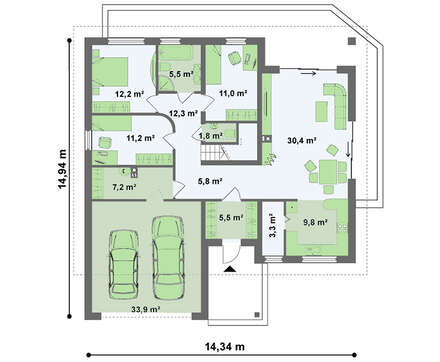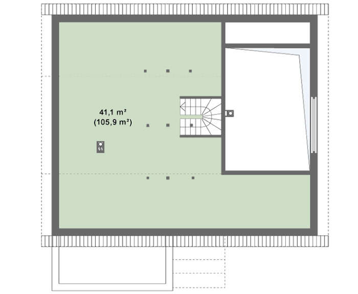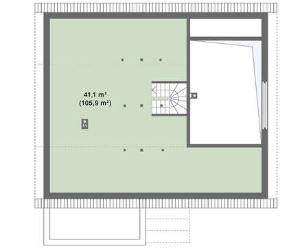 Еще один сюрприз от проектировщиков… Вроде бы, дом одноэтажный, но в проекте заложена возможность оборудовать  пространство мансарды под жилые комнаты. А можно устроить кабинет, или бильярдную, или рекреативную зону. В любом случае, решение принимать вам. Ведь вам здесь жить.