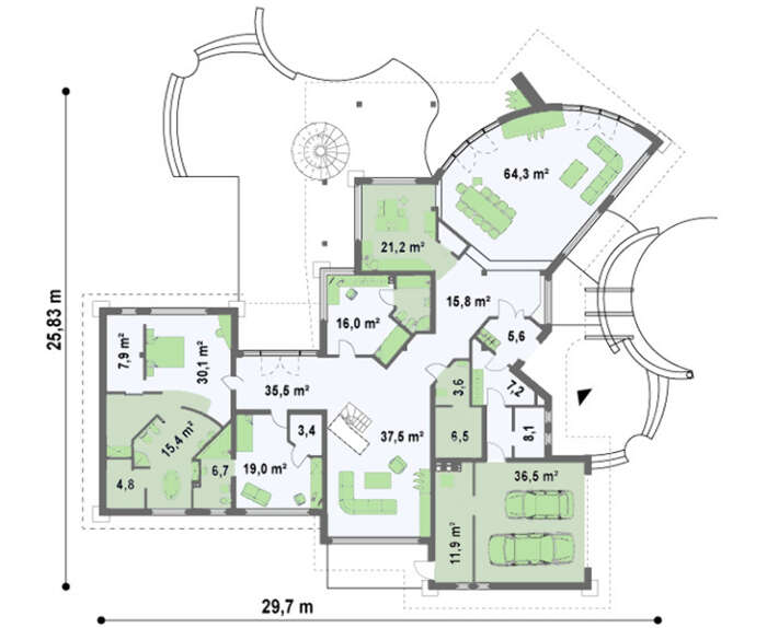 • 4M572 Проект комфортабельного классического особняка с гаражом для двух автомобилей