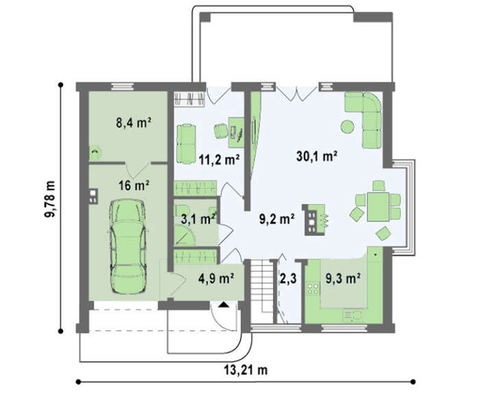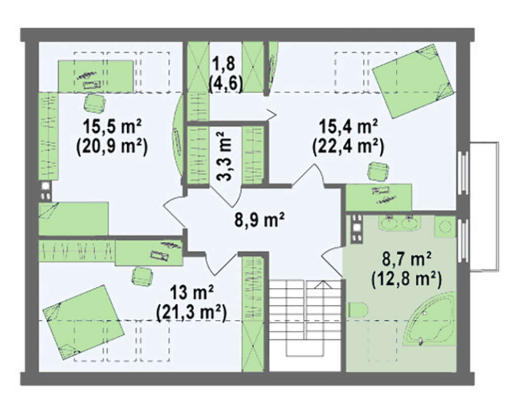 Проект содержит три раздела – АрхитектурныйКонструктивный и Инженерный: водоснабжение, отопление, вентиляция, канализация, электроснабжение (приобретается за дополнительную плату) + Пояснительная записка.