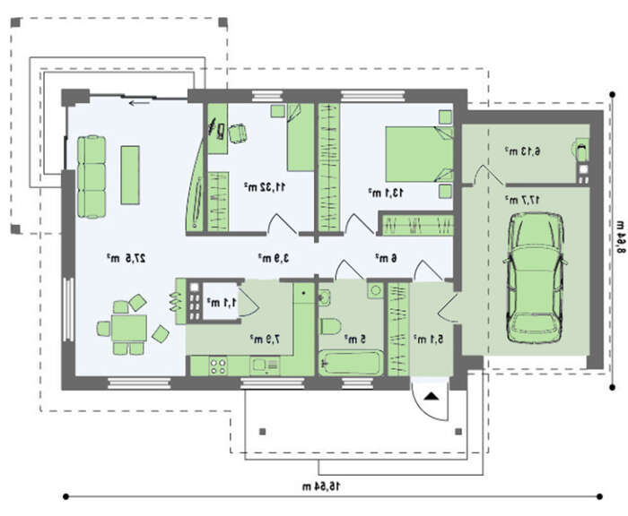 • 4M286 Проект комфортного классического одноэтажного дома с гаражом