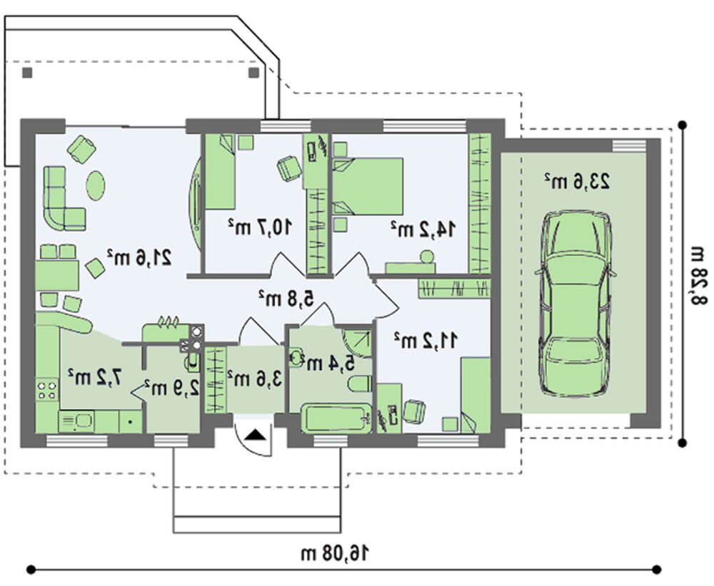 Проект комфортного уютного одноэтажного дома с гаражом 4M476G