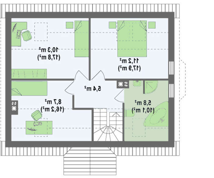 Проект содержит три раздела – АрхитектурныйКонструктивный и Инженерный: водоснабжение, отопление, вентиляция, канализация, электроснабжение (приобретается за дополнительную плату) + Пояснительная записка.