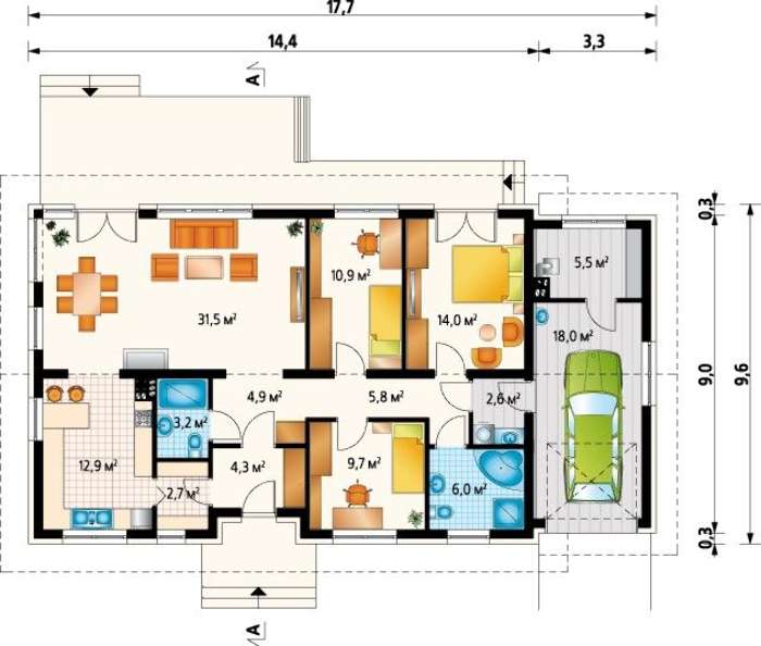 Проект коттеджа для узкого участка 18 на 10 4M3285