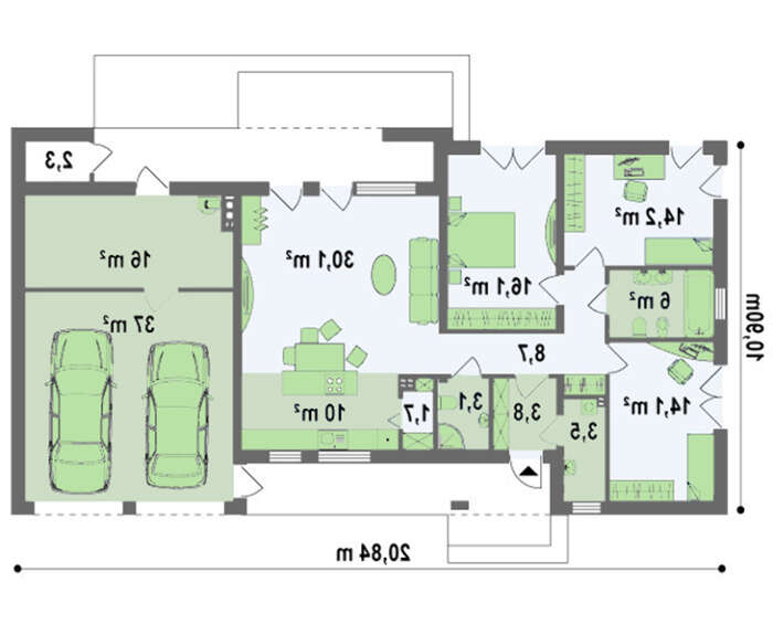 • 4M590 Проект коттеджа хай тек с гаражом на два авто