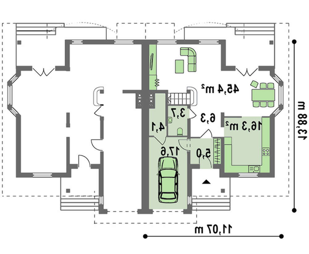 Здравствуйте! Можно ли этот проект уменьшить согласно размерам участка? Участок 19*29? 19 - это по фасаду, фасад на юг. И вместо гаража предусмотреть спальню? Можете выслать итоговые размеры помещений на почту? Заранее благодарна.