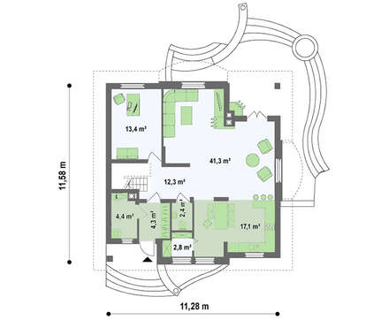 Место точно хватит всем. Для бабушки подойдет светлая комната на первом этаже. Тут же просторная гостиная с камином, большая кухня с обеденной зоной и вместительной кладовой.