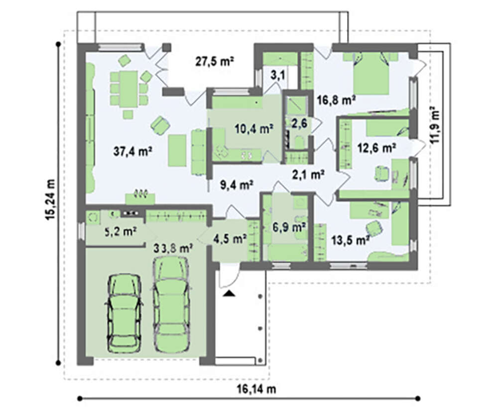 • 4M060 Проект коттеджа с гаражом для двух авто