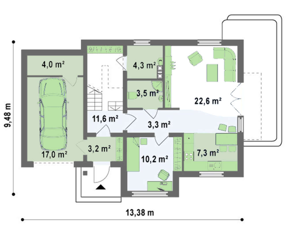 Проект дома с гаражом на две семьи – это неплохой вариант с точки зрения решения жилищного вопроса при стесненных финансовых условиях. Ведь в процессе возведения здания можно существенно сэкономить, на некоторых этапах – до 50%.