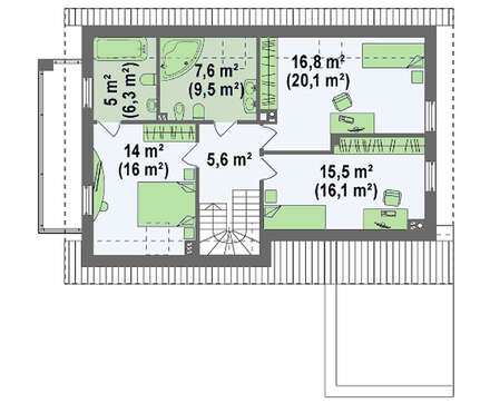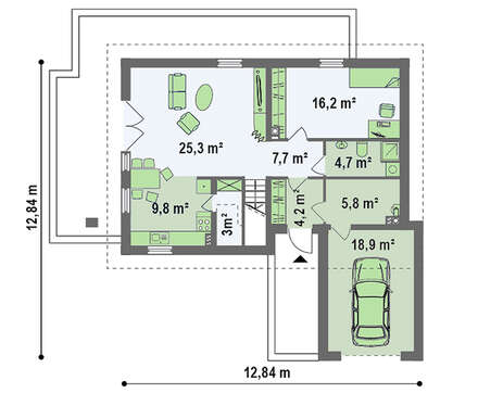 Семье из пяти-шести человек сложно с комфортом разместиться в городской квартире. Для того чтобы решить жилищный вопрос, можно, конечно, купить еще одну квартиру и разъехаться. Но мы предлагаем другой вариант – загородное жилье. Для такой семьи идеально подойдет дом с мансардой и фронтальным гаражом. В этом проекте учтены потребности всех членов семьи.