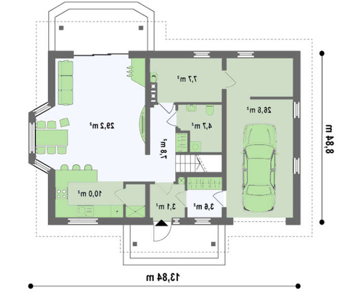 Для того, чтобы по достоинству оценить проект дома со встроенным гаражом, эркером и балконом, нужно не только посчитать количество спален и площадь кухни, но и обратить внимание на, казалось бы, незначительные нюансы, заложенные в проекте дома. В конечном итоге, планировка дома достаточно стандартная, но именно мелочи делают жизнь семейства комфортной.