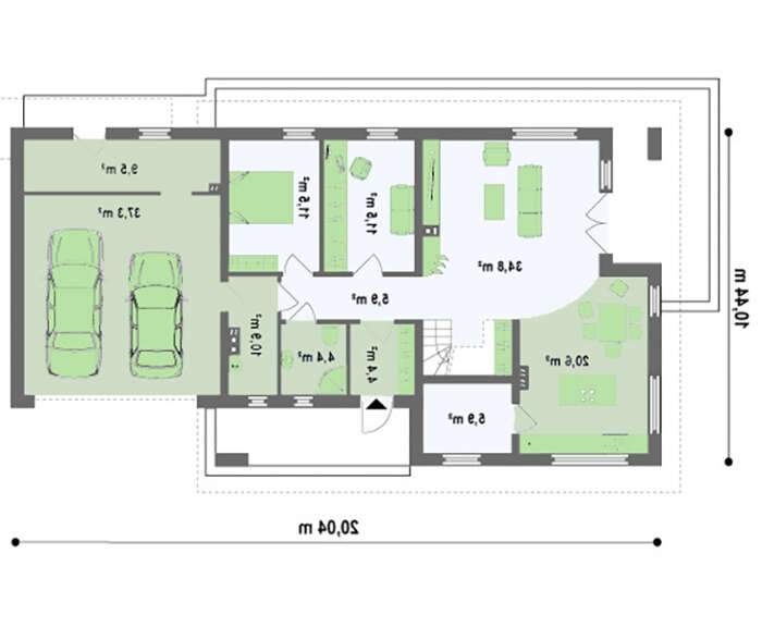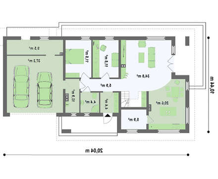 Проект коттеджа со встроенным гаражом и 2 спальнями