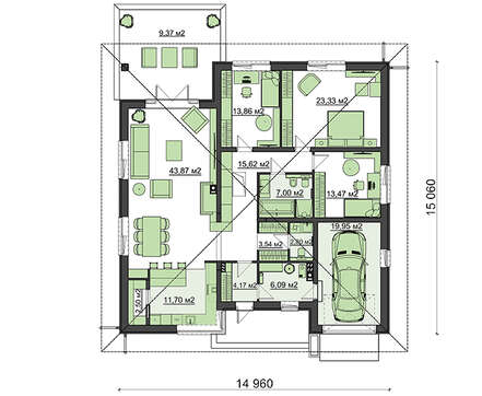 Одноэтажный коттедж является ярым представителем немецкого жилья. Проект можно использовать как для городской застройки, так и в качестве дачи. Дом рассчитан для проживания среднестатистической семьи, предпочитающей жизнь в одном уровне.