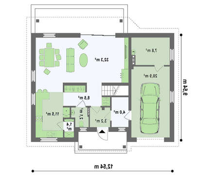 Проект дома в традиционном стиле с двускатной крышей можно смело назвать "жилье на вырост". Все дело в том, что в нем заложена возможность увеличения жилой площади, так сказать, расширения жизненного пространства.