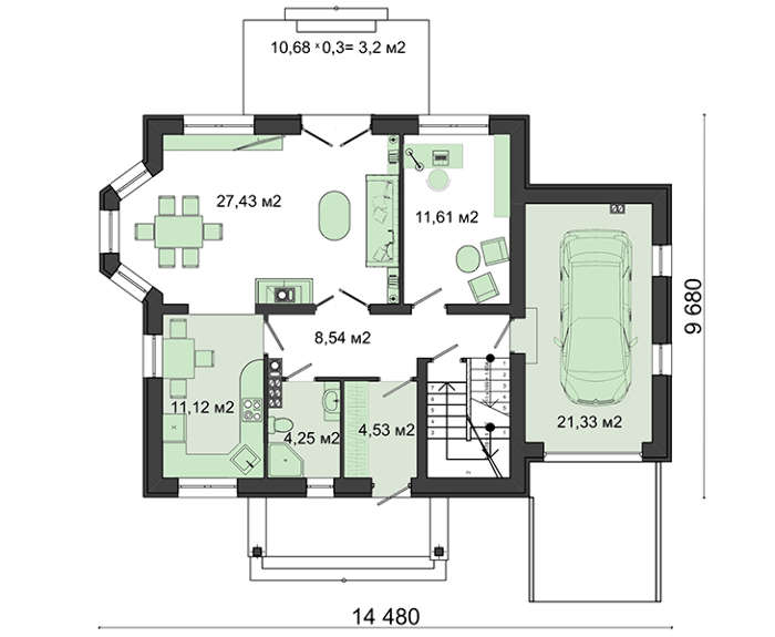 Проект содержит три раздела – АрхитектурныйКонструктивный и Инженерный: водоснабжение, отопление, вентиляция, канализация, электроснабжение (приобретается за дополнительную плату) + Пояснительная записка.