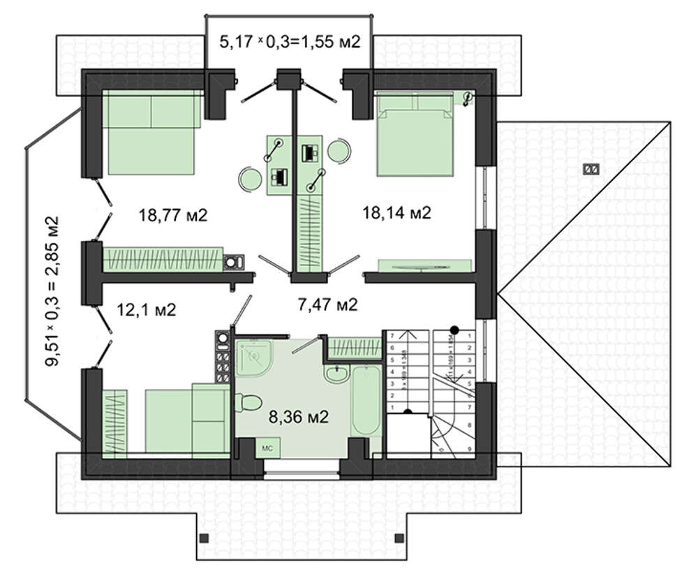 Проект красивого загородного особняка с площадью 200 m² 4M3097
