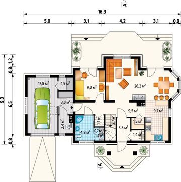 Проект красивой усадьбы с террасой и балконом 4M3604m