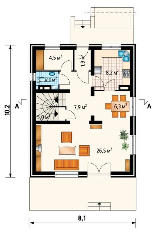 Проект красочного дома в европейском стиле под двухскатной алой кровлей
