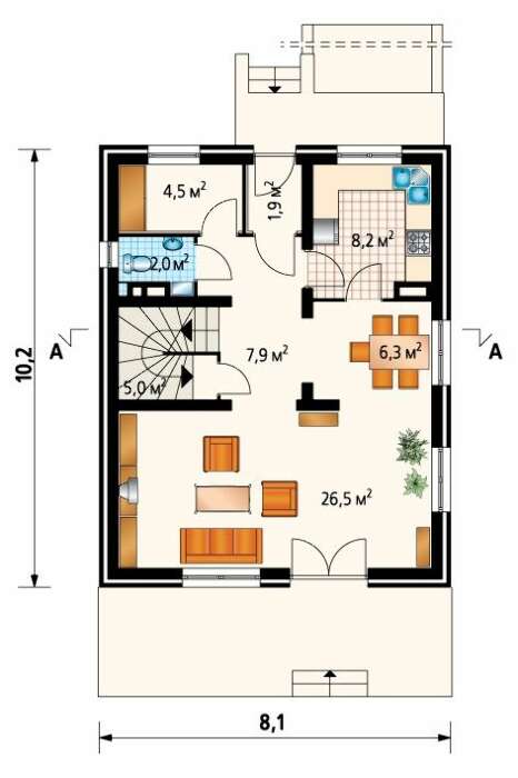• 4M3560 Проект красочного дома в европейском стиле под двухскатной алой кровлей