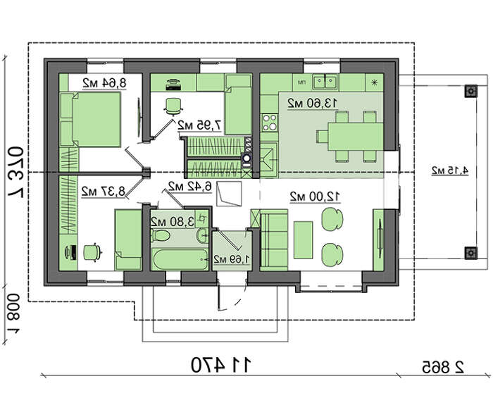 Главное достоинство проекта маленького одноэтажного дома в том, что застройщик получает современное жилье за разумную сумму. Такой дом можно использовать не только как дачу, но и для стационарного проживания.