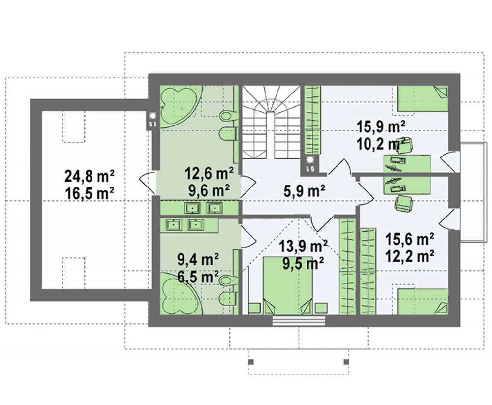 • 4M7047 Проект мансардного дома из пенобетона с гаражом общей площадью 194 кв.м.