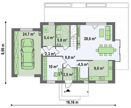 Проект мансардного дома из пенобетона с гаражом общей площадью 194 кв.м.