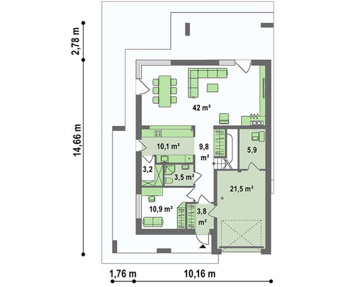 Проект содержит три раздела – АрхитектурныйКонструктивный и Инженерный: водоснабжение, отопление, вентиляция, канализация, электроснабжение (приобретается за дополнительную плату) + Пояснительная записка.