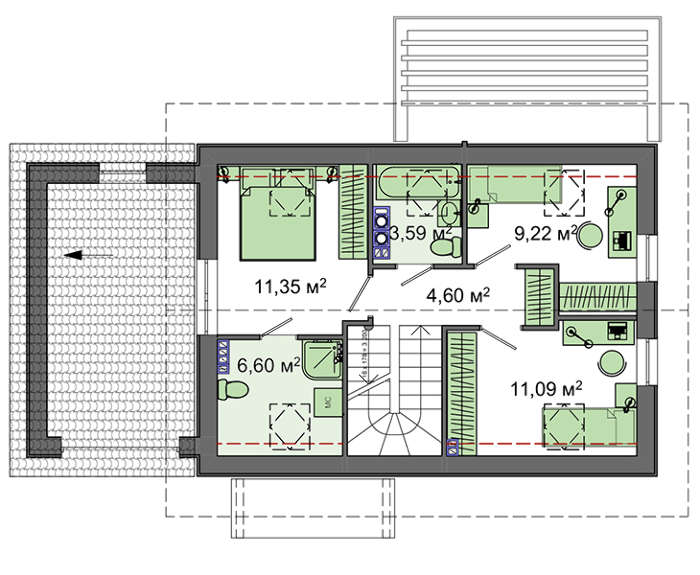 • 4M222 Проект небольшого аккуратного дачного коттеджа с гаражом и мансардой