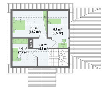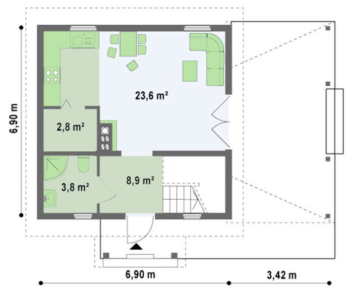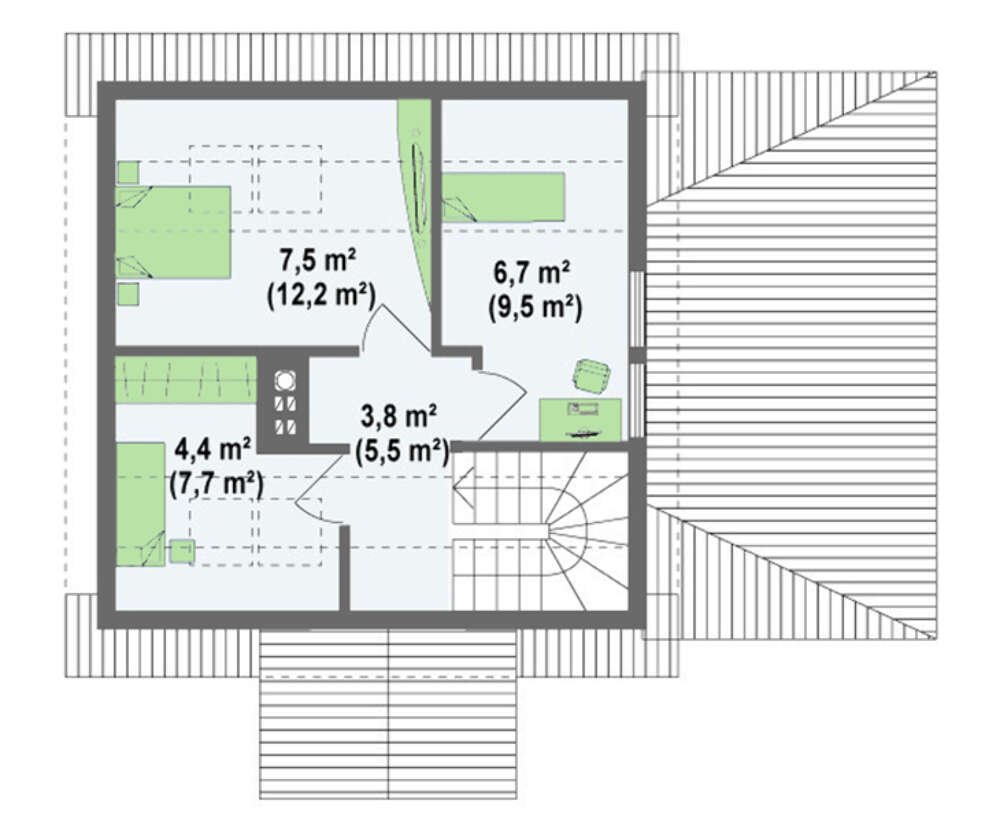 • 4M448 Проект небольшого дома с мансардой и боковой террасой