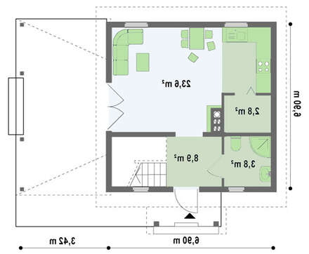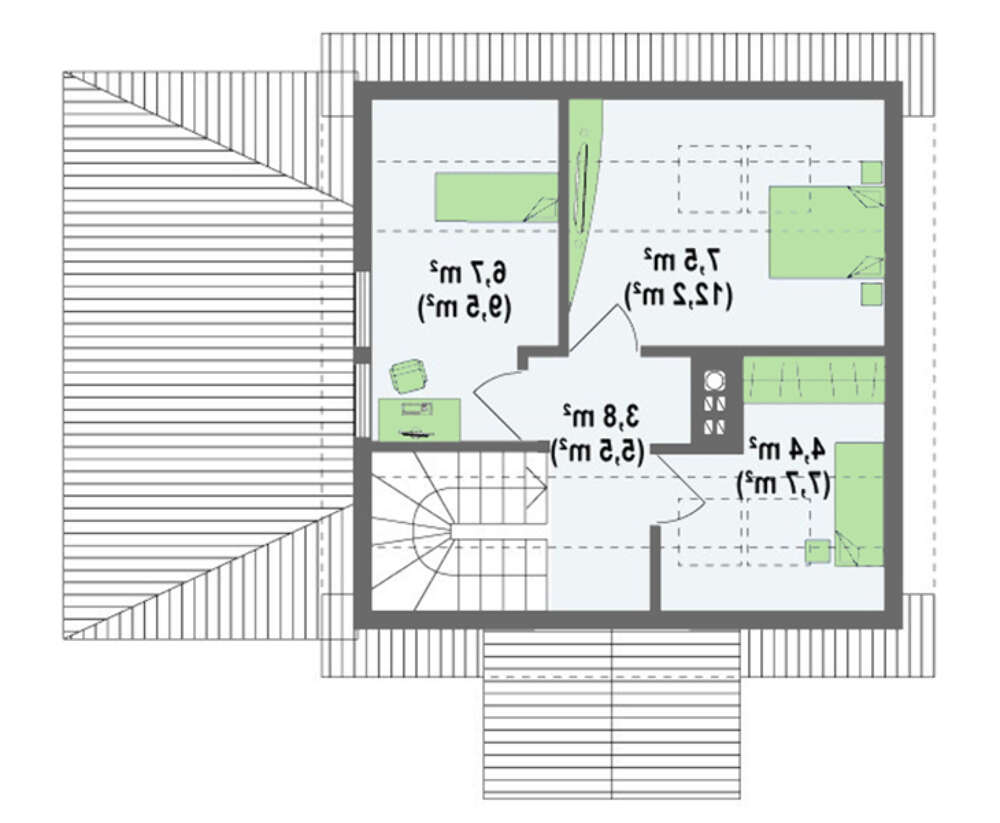 • 4M448 Проект небольшого дома с мансардой и боковой террасой