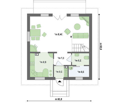 Проект содержит три раздела – АрхитектурныйКонструктивный и Инженерный: водоснабжение, отопление, вентиляция, канализация, электроснабжение (приобретается за дополнительную плату) + Пояснительная записка.