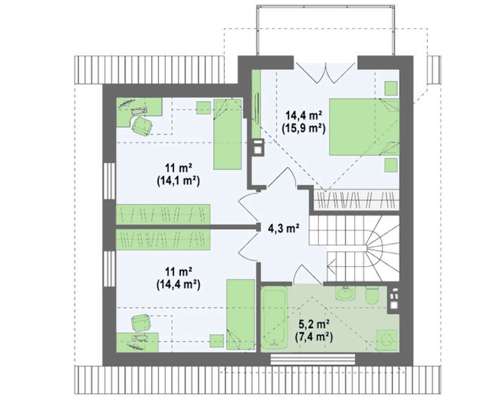 • 4M086 Проект небольшого коттеджа с мансардными окнами