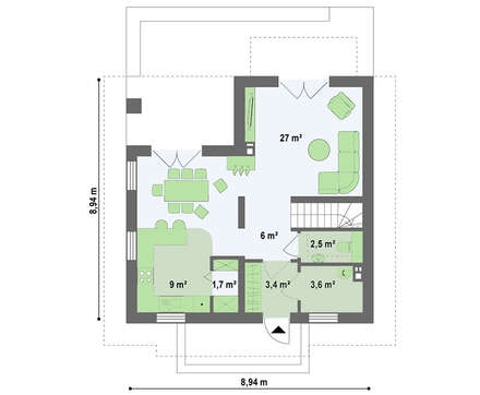 Проект небольшого стильного дома с мансардными окнами можно рассматривать и как вариант загородной дачи, и как постоянное жилье для семьи из 3-4 человек. Но в любом случае, вы получаете современный дом со всеми удобствами плюс весь набор преимуществ проживания за городом: чистый воздух, вид из окна на лес, луг или реку. В крайнем случае, на собственный сад. И минус беспокойные соседи за стенкой.