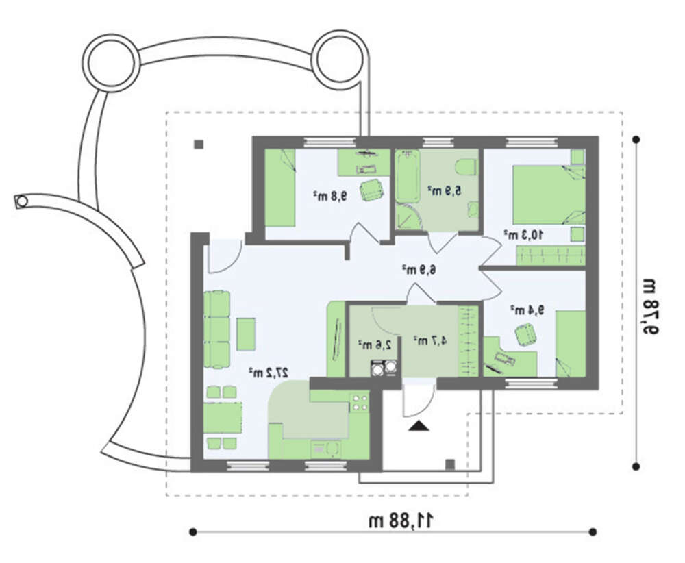 • 4M066 Проект небольшого одноэтажного дома с тремя спальнями