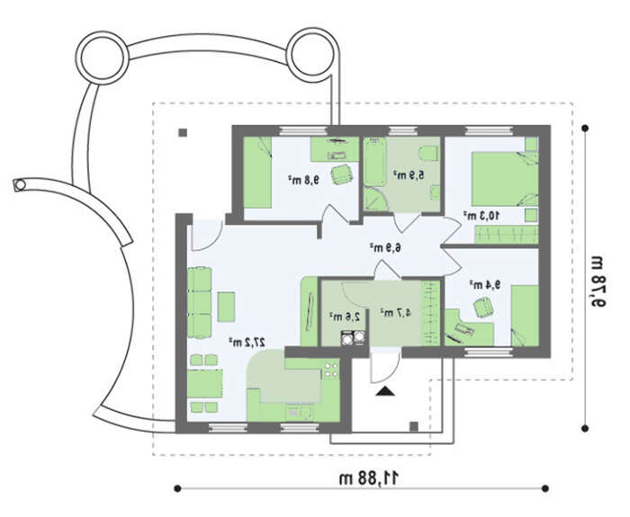 Проект небольшого одноэтажного дома с тремя спальнями 4M066