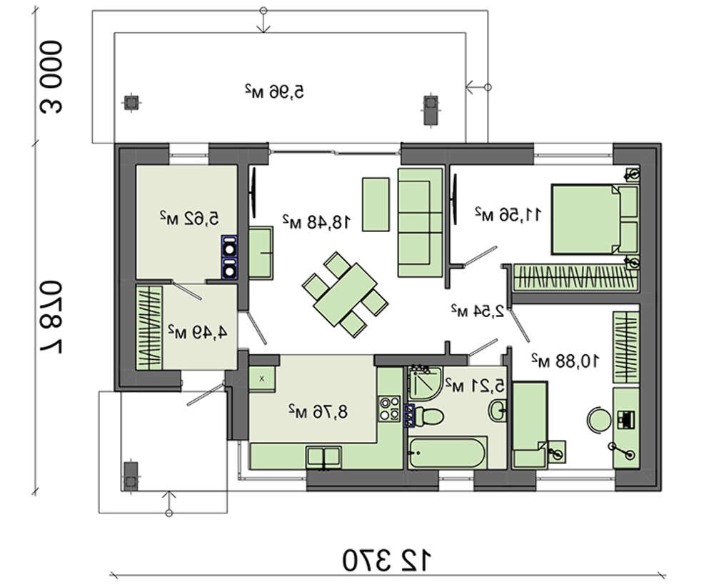 Проект компактного одноэтажного дома площадью 74 кв.м. 4M514