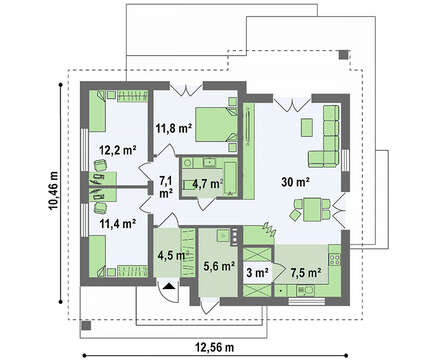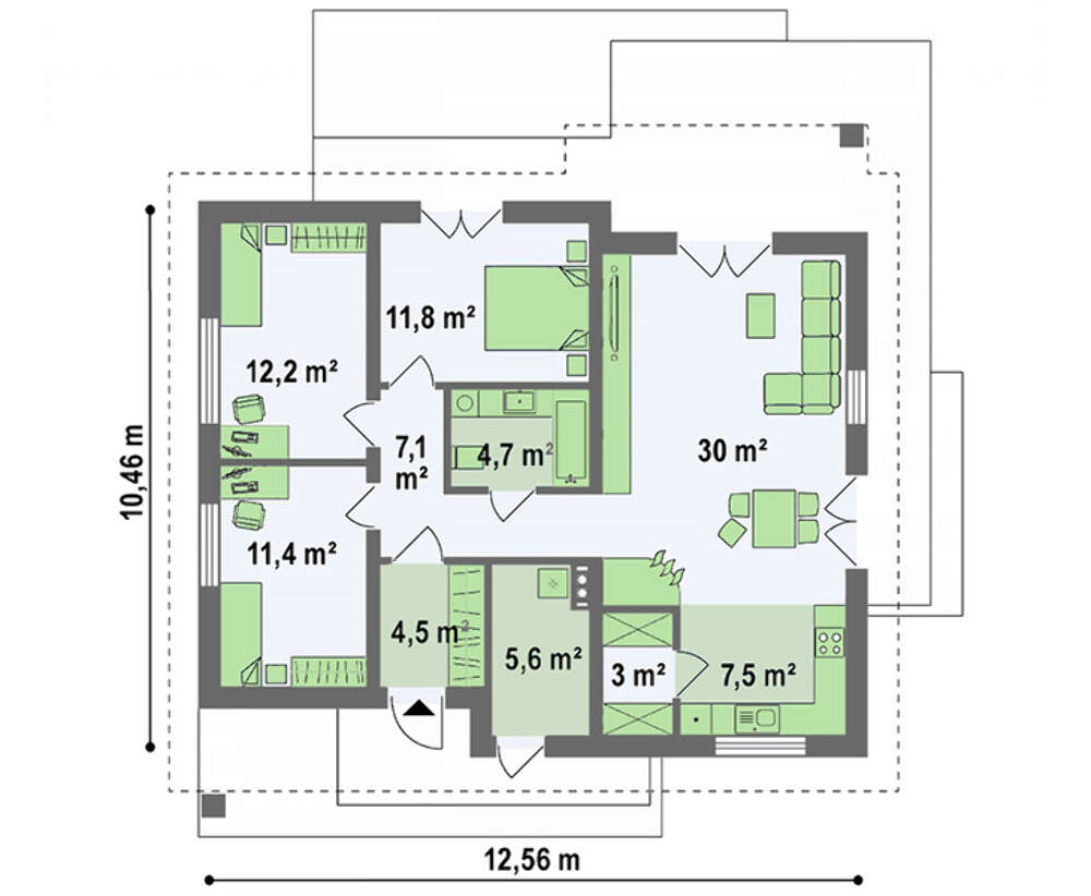 Проект небольшого одноэтажного дома общей площадью 98 кв.м 4M7022