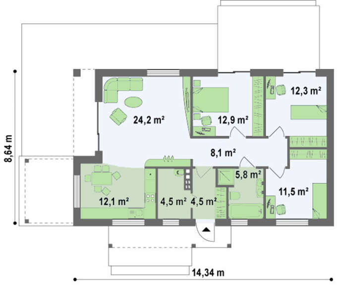 Популярная чешская модель и кинозвезда Ева Герцигова, которая стала ведущей моделью торговой марки L'Oreal, недавно обзавелась одноэтажным домом, выполненном по проекту 4М284 в экостиле, который построили на исторической родине ее деда. Дело в том, что корни Евы уходят в словацкую землю, и она с детства хранила воспоминания о том, как вся осень проходила за сбором грибов в местных лесах.