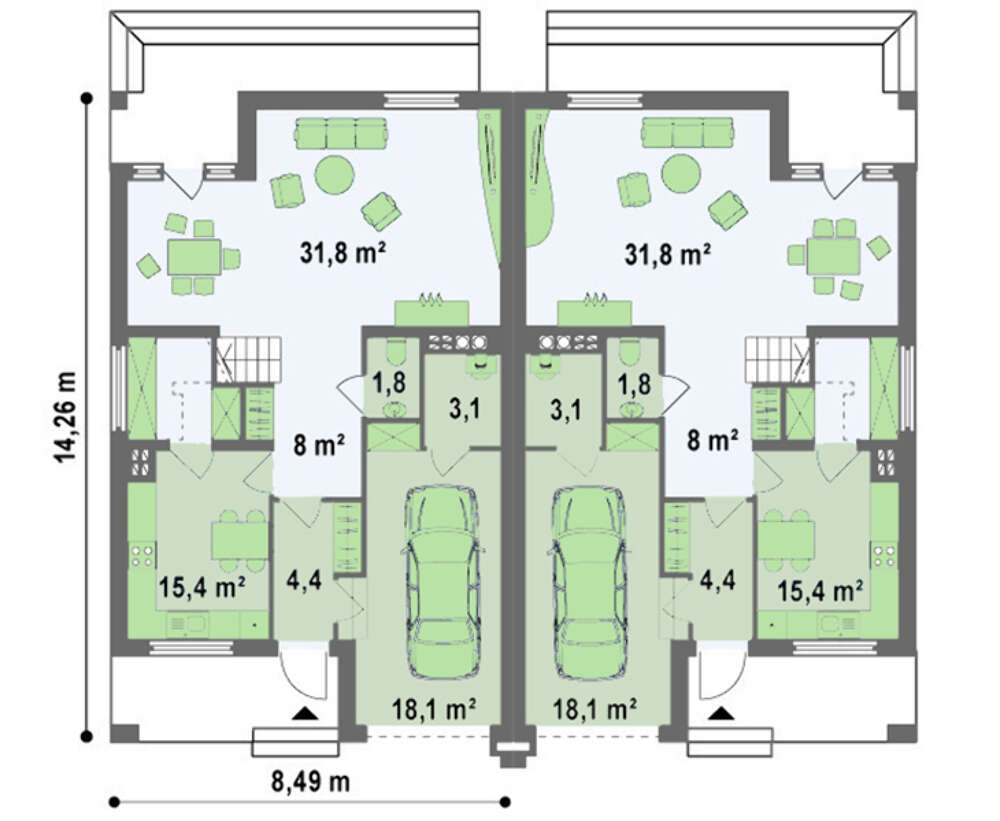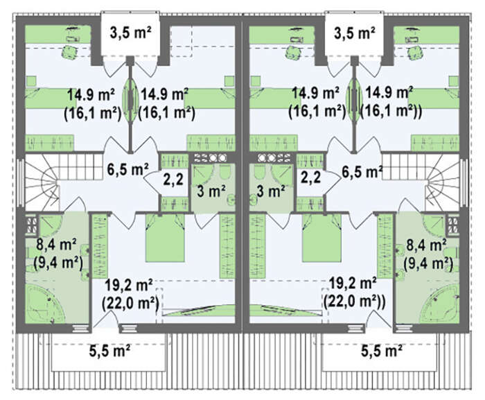 Лориков, здравствуйте! 158 м2 - это общая площадь дома Одной секции.