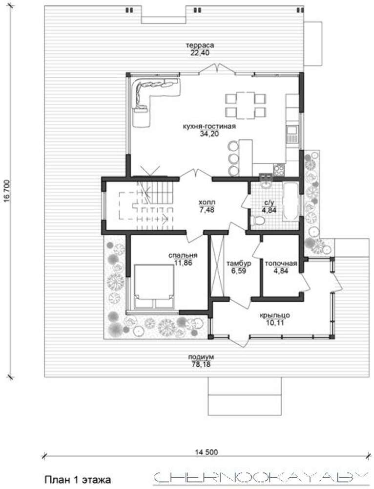 Проект содержит три раздела – АрхитектурныйКонструктивный и Инженерный: водоснабжение, отопление, вентиляция, канализация, электроснабжение (приобретается за дополнительную плату) + Пояснительная записка.